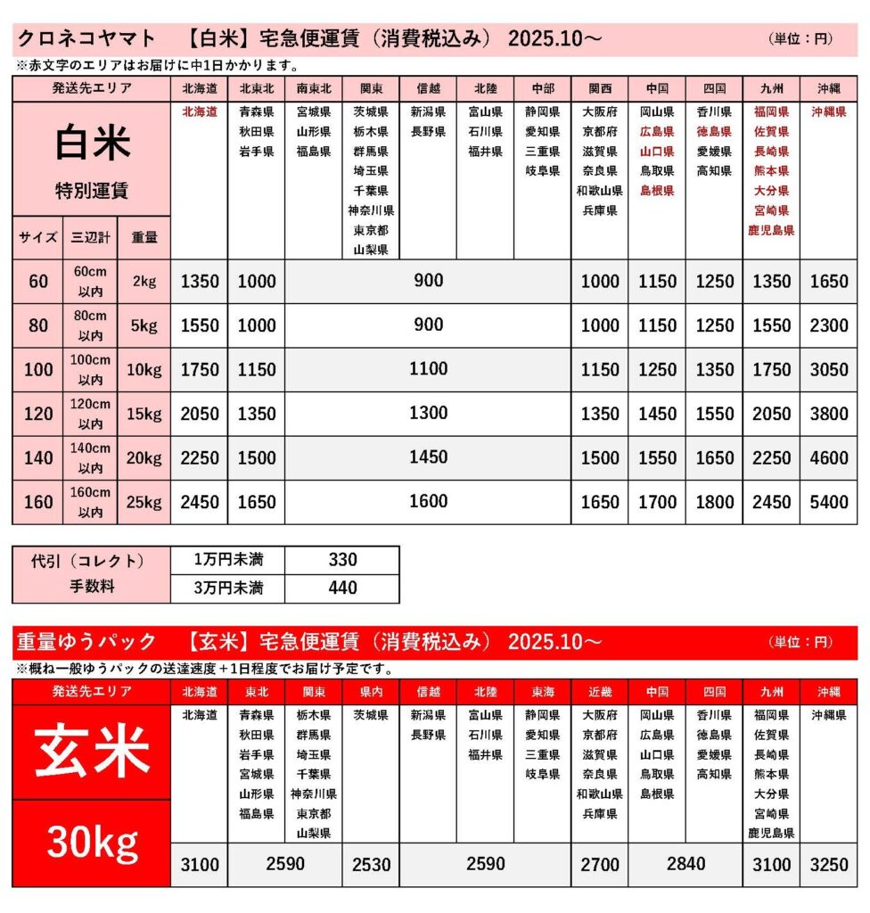 玄米→米袋のまま発送いたしますので箱代はかかりません。
